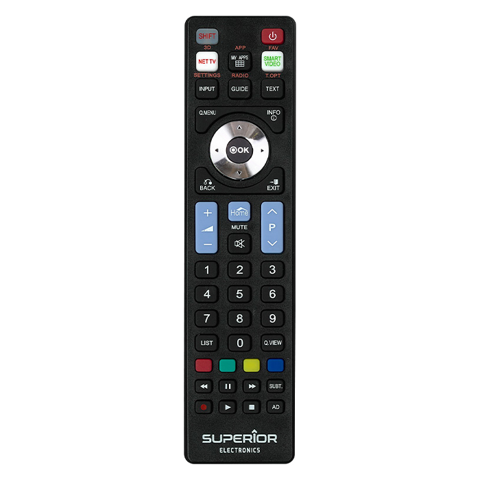 Τηλεχειριστήριο αντικατάστασης για τηλεοράσεις LG- Κατάλληλο για όλες τις τηλεοράσεις LG- Έτοιμο για χρήση μόλις τοποθετηθούν οι μπαταρίες- Δεν απαιτείται προγραμματισμός – Ισχυρό σήμα – Περιέχει όλες τις λειτουργίες του αυθεντικού τηλεχειριστηρίου*- Συμβατό με όλα τα μοντέλα παραγωγής μετά απο το 2000 – Λειτουργεί με 2 μπαταρίες AAA/LR03 (δεν συμπεριλαμβάνονται) *Κάποιες προηγμένες λειτουργίες των καινούριων Smart TV’s μπορεί να μην υποστηρίζονται πλήρως