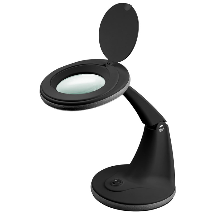 Επιτραπέζιος μεγεθυντικός φακός πάγκου εργασίας με φωτισμό LED 450lm, 6W σε μαύρο χρώμα.