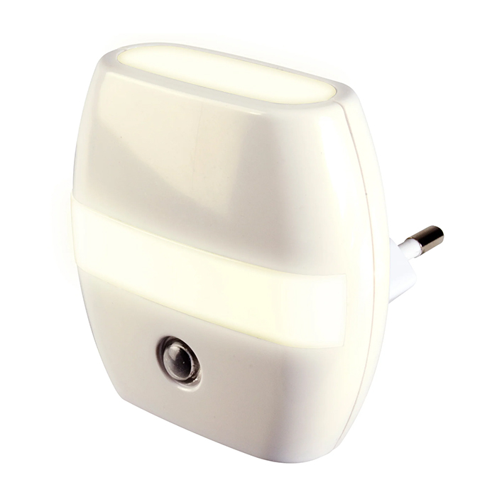 Φωτάκι νυκτός με αισθητήρα.Μικρού μεγέθους και απλής λειτουργίας φωτάκι νυκτός LED με ενσωματωμένο αισθητήρα που ενεργοποιείται αυτόματα στο σκοτάδι. Ιδανικό για παιδικό δωμάτιο, διάδρομο ή γκαράζ. Ιδανικό για τα υπνοδωμάτια παιδιών από 0 μηνών έως 12 ετών, παρέχοντας θερμό λευκό φως (2200-3000K). Χαρακτηριστικά:- Φωτεινότητα: 400 lm- Τάση εισόδου: 230V~, 50Hz- Ιδανικό για χρήση σε παιδικό δωμάτιο, διάδρομο, γκαράζ κ.λπ.- Ενεργειακά αποδοτικός φωτισμός LED 0.3W- Το χαλαρωτικό φως βοηθά τα παιδιά να κοιμηθούν ήρεμα και άνετα- Διαθέτει αισθητήρα, για αυτόματη ενεργοποίηση όταν πέφτει το σκοτάδι- Τεχνολογία: LED- Συνιστώμενη ηλικία: 0 μηνών – 12 ετών- Θερμοκρασία χρώματος: 2200-3000K, θερμό λευκό- Ονομαστική διάρκεια ζωής: 25.000 ώρες- Υλικό: Πλαστικό- Χρώμα: Λευκό