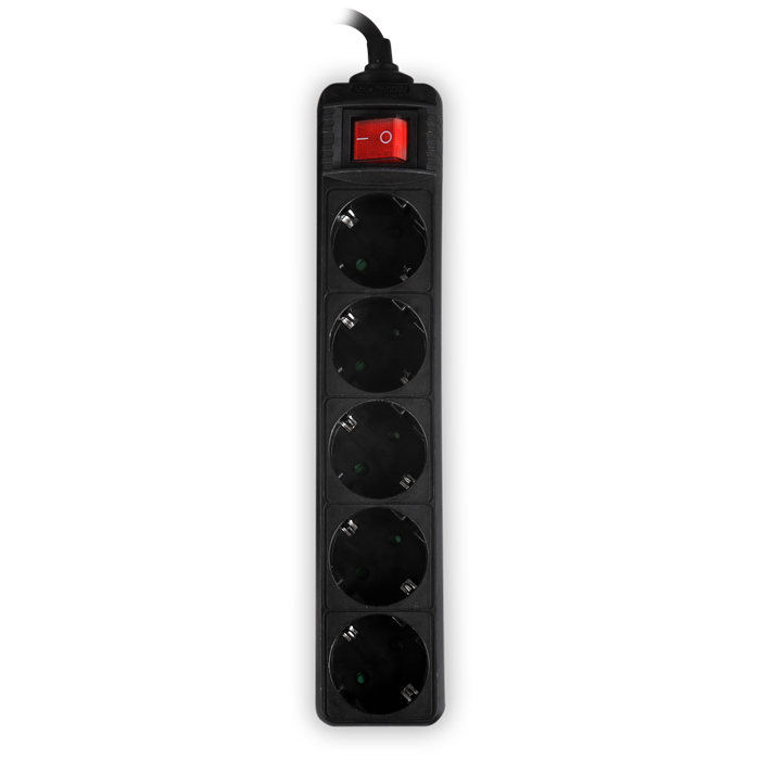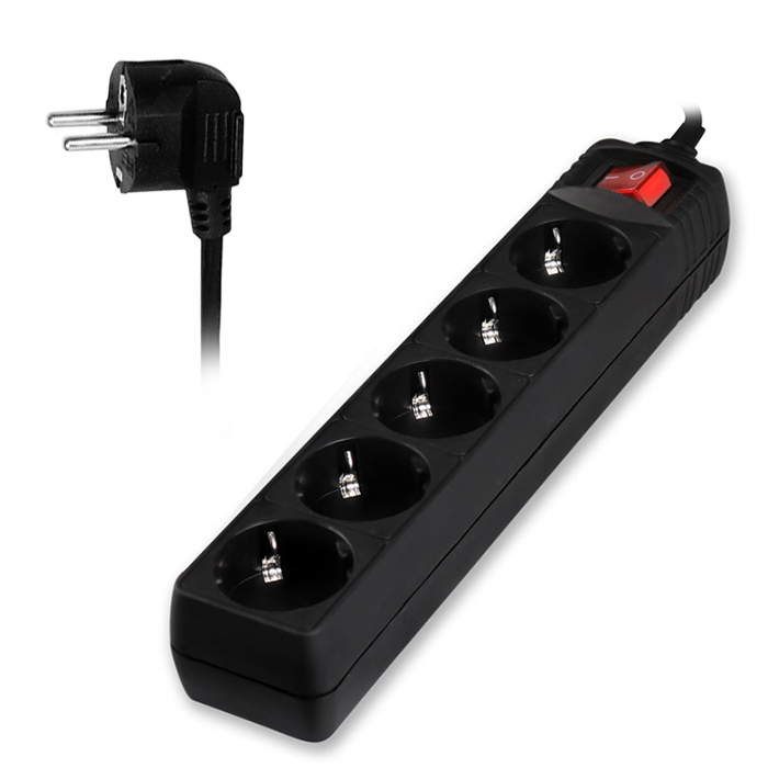 Πολύπριζο 5 θέσεων με διακόπτη ON/OFF και καλώδιο 1.5m σε μαύρο χρώμα.