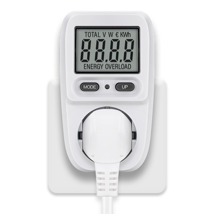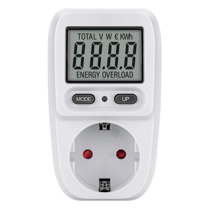 Ψηφιακός μετρητής κατανάλωσης ενέργειας για οικιακές ηλεκτρικές συσκευές.Πρίζα με ενσωματωμένο μετρητή κατανάλωσης ρεύματος για τον υπολογισμό του κόστους λειτουργίας των οικιακών συσκευών, όπως π.χ. ψυγεία, πλυντήρια ρούχων, υπολογιστές, τηλεοράσεις καθώς και τον προσδιορισμό των δυνατοτήτων εξοικονόμησης ενέργειας Η συσκευή επιτρέπει τόσο την ανάγνωση δεδομένων σε πραγματικό χρόνο όσο και τη μακροπρόθεσμη μέτρηση, εφόσον η συσκευή παραμένει συνδεδεμένη στο τροφοδοτικόΧαρακτηριστικά:- Ιδανικό για να μετρήσετε την ενέργεια που καταναλώνουν οι συσκευές σας- Μεγάλο εύρος μετρήσεων μεταξύ 0.5 W και 3680W (μέγιστη ισχύς 3680W, 16A στα 230V)- Διαθέτει ευανάγνωστη LCD οθόνη που εμφανίζει την κατανάλωση και το κόστος ενέργειας- Υπολογίζει το κόστος κατανάλωσης σε ευρώ, σύμφωνα με τo κόστος kWh του παρόχου σας (το κόστος €/kWh καταχωρείται από τον χρήστη)- Εύκολη λειτουργία μέσω δύο πλήκτρων- Μπορεί να μετρήσει τις συνολικές kWh χρήσης, το χρόνο χρήσης και το κόστος ρεύματος απο την χρήση της συσκευής και να σας βοηθήσει να μειώσετε το λογαριασμό του ρεύματος σας- Κατηγορία προστασίας IP20, κατάλληλο για χρήση μόνο σε εσωτερικούς χώρους- Τάση εισόδου: 230V (AC)- Μέγιστη απόδοση: 3680W- Ρεύμα εισόδου: 16A- Μέγιστο ρεύμα εξόδου: 16A- Μονάδα μέτρησης ισχύος: €/kWh- Εύρος μέτρησης: 0.5W – 3680W- IP rating: IP20- Χρώμα: Λευκό/Γκρι- Συσκευασία: Κουτί