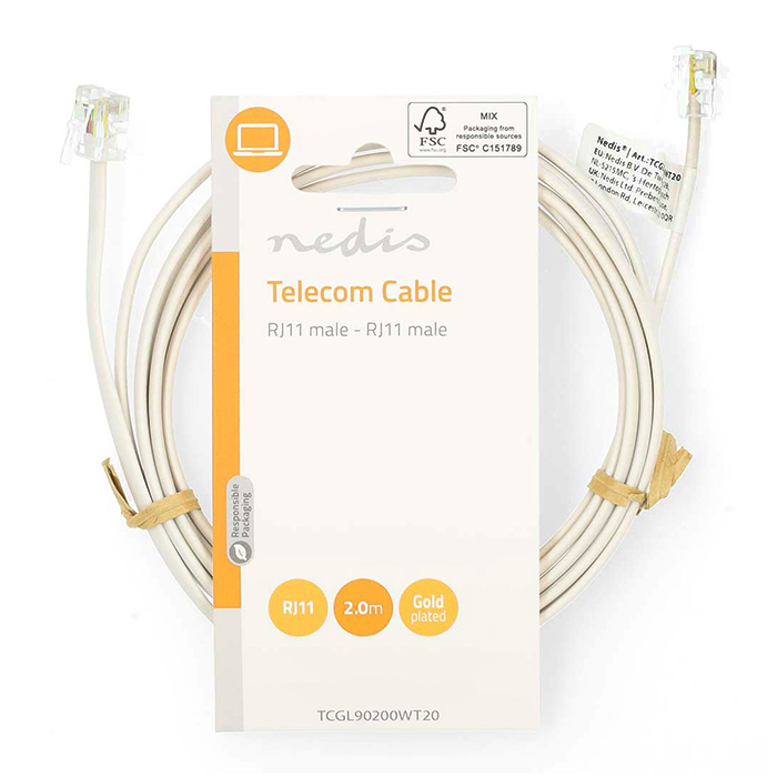 Τηλεφωνικό καλώδιο RJ11 αρσ. – RJ11 αρσ., 2.00m σε λευκό χρώμα.