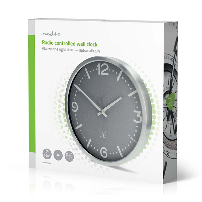 Ρολόι τοίχου, αθόρυβο, με ραδιοελεγχόμενη ακρίβεια, σε γκρι χρώμα.Εξασφαλίστε απόλυτη ακρίβεια χρόνου σε κάθε επαγγελματικό ή οικιακό χώρο με το ραδιοελεγχόμενο αναλογικό ρολόι τοίχου Nedis. Με διάμετρο 30cm, σύγχρονο σχεδιασμό και εξαιρετική λειτουργικότητα, αποτελεί ιδανική επιλογή για σπίτια, γραφεία, σχολεία, δημόσια κτίρια και εμπορικούς χώρους.Λαμβάνοντας το σήμα DCF από τη Φρανκφούρτη, το ρολόι ρυθμίζει αυτόματα την ώρα σύμφωνα με την Κεντρική Ευρωπαϊκή Ώρα (CET, GMT+1), προσαρμόζοντας χειμερινή και θερινή ώρα και εξασφαλίζοντας συνεχώς απόλυτη ακρίβεια.Χάρη στο πλαίσιο από ανοξείδωτο ατσάλι και γκρι καντράν με λευκούς δείκτες υψηλής αντίθεσης που διαθέτει, το ρολόι συνδυάζει κομψότητα και άριστη αναγνωσιμότητα. Χαρακτηριστικά:- Αναλογικό ρολόι τοίχου- Μοντέρνος και κομψός σχεδιασμός- Μεγάλοι ευανάγνωστοι αριθμοί- Γκρι καντράν με λευκούς δείκτες, αριθμούς και διακριτικά σήματα, σχεδιασμένο για άριστη ευκρίνεια- Ακρίβεια με ραδιοέλεγχο: συγχρονίζεται αυτόματα με το ατομικό ρολόι DCF της Φρανκφούρτης- Σχεδιασμένο για την Κεντρική Ευρώπη: Λειτουργεί ιδανικά στην κεντρική ευρωπαϊκή ζώνη ώρας (CET – GMT+1), προσφέροντας απόλυτη συμβατότητα και αξιοπιστία- Αθόρυβη λειτουργία – Ομαλή κίνηση δευτερολέπτου χωρίς τικ-τακ, ιδανικό για υπνοδωμάτια, γραφεία και σαλόνια- Ανθεκτικό πλαίσιο από υψηλής ποιότητας ανοξείδωτο ατσάλι με σύγχρονο φινίρισμα που εντυπωσιάζει – Διάμετρος: 30 cm- Δυνατότητα αυτόματης και χειροκίνητης ρύθμισης της ώρας- Αυτόματος συγχρονισμός ώρας: DCF/RCC- Υλικό: Αλουμίνιο- Χρώμα: Γκρι/Μέταλλο- Τροφοδοτείται μέσω 1x μπαταρίας AA/LR6 1.5V DC (δεν συμπεριλαμβάνεται)