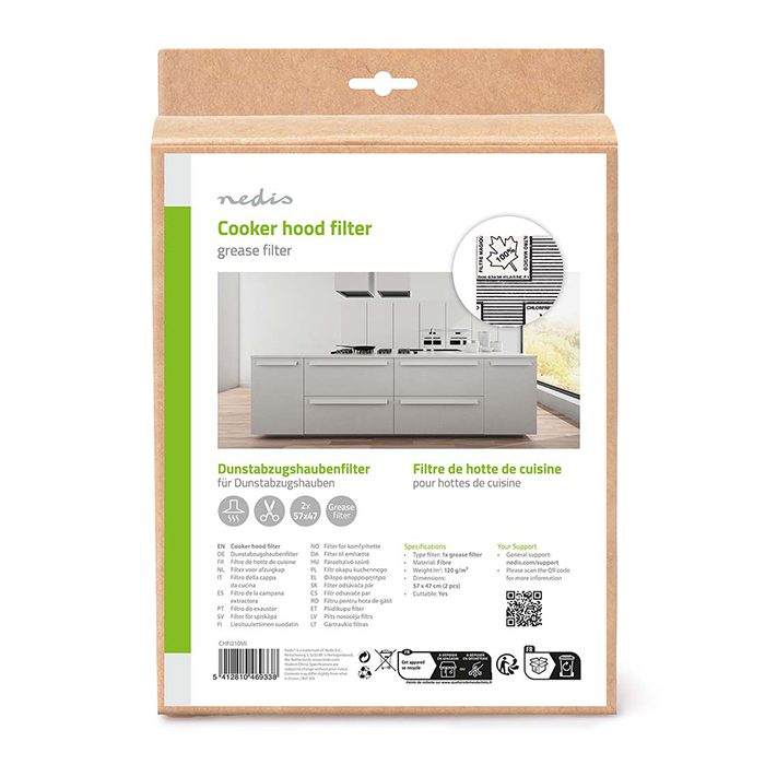 Φίλτρο για απορροφητήρα 57 x 47cm. Αυτό το φίλτρο θα απορροφήσει τις μυρωδιές αλλά και τα λίπη που διαχέονται κατά τη διάρκεια του μαγειρέματος. Επιπρόσθετα, το φίλτρο σβήνει μόνο του εντός 10 δευτερολέπτων, σύμφωνα με το πρότυπο V1 και απόλυτα ασφαλές για χρήση. Το φίλτρο είναι κατάλληλο για τους περισσότερους απορροφητήρες και μπορεί να κοπεί στις διαστάσεις που επιθυμείτε. Για να διατηρείται η απόδοσή του, συνιστάται η αντικατάστασή του κάθε 3 μήνες.Χαρακτηριστικά:- Universal φίλτρο για απορροφητήρες- Καθαρίζει τις δυσάρεστες οσμές της κουζίνας- Κατασκευασμένο από υλικό ανθεκτικό στη φωτιά / θερμότητα- Κόβεται εύκολα στο επιθυμητό μέγεθος- Διαστάσεις: 57 x 47cm – Χωρητικότητα φίλτρου: 120g/m²- Ένδειξη αντικατάστασης- Η συσκευασία περιλαμβάνει 2 τεμάχια – Υλικό: Αφρός- Χρώμα: Μαύρο / Λευκό