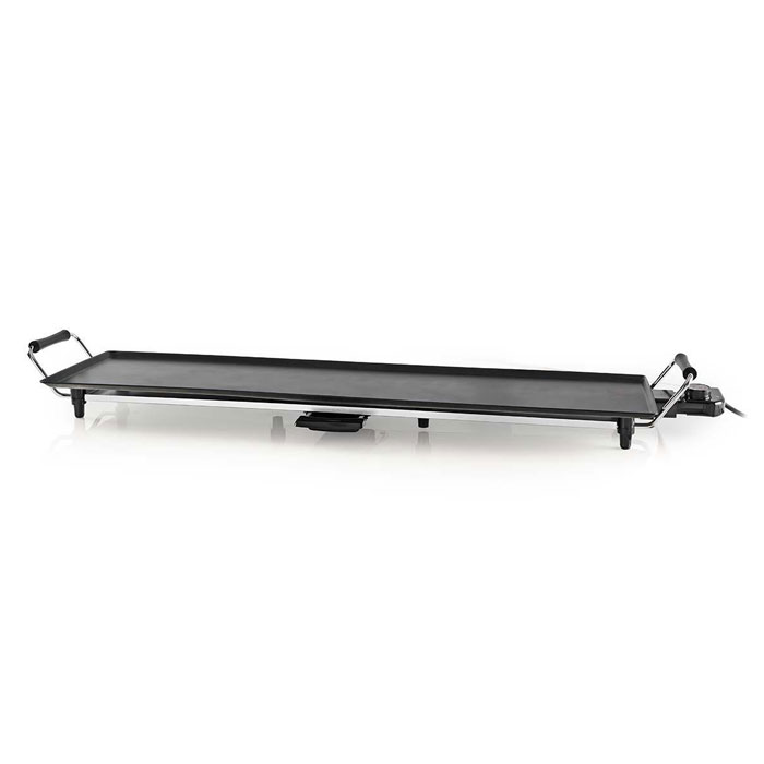 Γκριλιέρα Teppanyaki, με μεγάλη επιφάνεια 90 x 23 cm.Μαγειρέψτε το αγαπημένο σας φαγητό υγιεινά, γρήγορα και με στυλ με την ηλεκτρική γκριλιέρα Teppanyaki. Αποτελεί ιδανική επιλογή για τέλειο ψήσιμο όλων των ειδών λαχανικών, κρεάτων και ψαριών. Διαθέτει ρυθμιζόμενο θερμοστάτη για επιλογή θερμοκρασίας και αποσπώμενο δίσκο απορροής του λίπους για έναν πιο υγιεινό και χαμηλό σε θερμίδες τρόπο μαγειρέματος. Το αποσπώμενο καλώδιο τροφοδοσίας με τον θερμοστάτη και η αντικολλητική επιφάνεια της πλάκας ψησίματος προσφέρουν γρήγορο και εύκολο καθάρισμα.- Mαγειρέψτε υγιεινά, εύκολα και γρήγορα κρέας, ψάρια και λαχανικά – Πολύ μεγάλη επιφάνεια ψησίματος, 90 x 23 cm- Επιφάνεια με αντικολλητική επίστρωση για υγιεινό ψήσιμο και εύκολο καθάρισμα- Αποσπώμενος δίσκος απορροής του λίπους για εύκολο καθάρισμα- Ρυθμιζόμενος θερμοστάτης για επιλογή θερμοκρασίας- Αποσπώμενο καλώδιο τροφοδοσίας – Cool-Touch πλαϊνές λαβές για ασφαλή χρήση- Διαθέτει ενδεικτική λυχνία λειτουργίας- Μήκος καλωδίου: 0,90m- Διαστάσεις συσκευής (MxΠxY): 102.5 x 26 x 10.5cm- Χρώμα: Μαύρο- Υλικό: Μέταλλο- Τάση εισόδου: 230VAC, 50 Hz- Ισχύς: 1800WΠεριεχόμενα συσκευασίας:- Γκριλιέρα- Δίσκος αποστράγγιστης- Καλώδιο τροφοδοσίας- Εγχειρίδιο οδηγιών