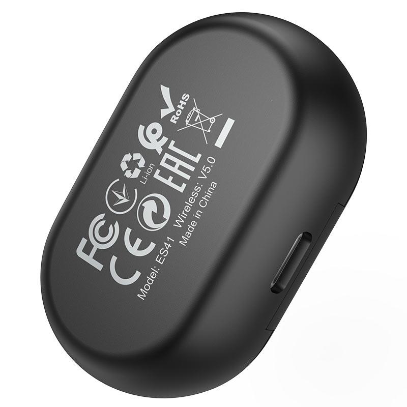 ES41 Clear sound TWS wireless headset with mic, BT V5.0, 40mAh headset battery for 5 hours of calls and music and 200 hours of standby, with 400mAh charging case