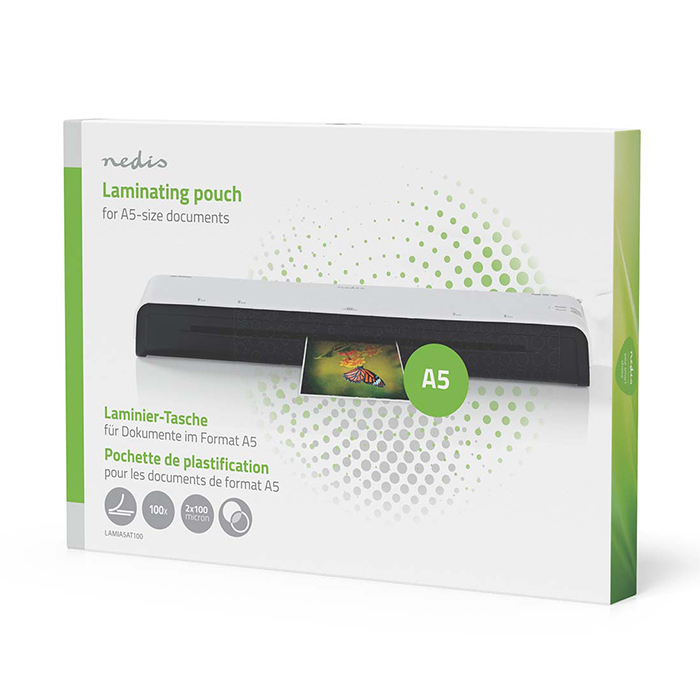 Φύλλο πλαστικοποίησης, για έγγραφα μεγέθους Α5.Διατηρήστε τα έγγραφά σας σε άριστη κατάσταση με τις θήκες πλαστικοποίησης Nedis. Με πάχος 100 µm, γυαλιστερό φινίρισμα και στρογγυλεμένες γωνίες, προσφέρουν κορυφαία προστασία από φθορά, σκόνη και υγρασία. Ιδανικά για κάρτες, φυλλάδια ή ενθύμια και επίσης, είναι συμβατά με όλες τις μηχανές θερμής πλαστικοποίησης.Χαρακτηριστικά:- Μέγεθος: A5- Πάχος: 100 µm- Διαφανές φύλλο- Υψηλή διαύγεια και γυαλιστερό φινίρισμα- Προστασία από βρωμιά, σκόνη και φθορές- Στρογγυλεμένες γωνίες για ασφαλή και εύκολη χρήση- Συμβατό με όλες τις μηχανές θερμής πλαστικοποίησης- Υλικό: PET- Η συσκευασία περιέχει 100 τεμάχια