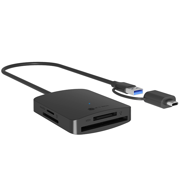 Card reader με ενσωματωμένο καλώδιο USB 3.2 Gen 1×1 Type-A/Type-C.Το card reader IB-CR302-CU3 της Icy Box είναι μια compact και φορητή συσκευή 4 θυρών σύνδεσης, που προσφέρει γρήγορη και αξιόπιστη μεταφορά δεδομένων. Με σύγχρονη σύνδεση USB 3.2 Gen 1×1 Type-A και αντάπτορα USB Type-C, εξασφαλίζει πλήρη συμβατότητα με όλες τις συσκευές. Υποστηρίζει μια μεγάλη γκάμα καρτών μνήμης, όπως SD, Micro SD, Compact Flash, κ.α., με χωρητικότητα έως 2TB, καλύπτοντας έτσι τις ανάγκες για φωτογραφίες, βίντεο και μεγάλα αρχεία. Ο συμπαγής σχεδιασμός του, το καθιστά ιδανικό για χρήση σε ταξίδια ή επαγγελματική καθημερινότητα, ενώ το ενσωματωμένο καλώδιο των 50 cm εξαλείφει την ανάγκη για επιπλέον καλώδια, προσφέροντας ευκολία και ταχύτητα στη σύνδεση.Χαρακτηριστικά:- Κατασκευή από αλουμίνιο υψηλής ποιότητας σε μαύρο χρώμα- Συμπαγής και ελαφρύς σχεδιασμός- Λειτουργία Plug & Play και Hot Swap- Εξωτερική συσκευή ανάγνωσης τεσσάρων διαφορετικών τύπων κάρτας μνήμης με USB 3.2 Gen 1×1- Υποστηρίζει κάρτες μνήμης SD/TF/NS/CF με χωρητικότητα έως 2 TB- Διαθέτει ενσωματωμένο καλώδιο και αντάπτορα USB 3.2 Gen 1×1 Type-A σε Type-C, μήκους 50cm- Ταχύτητα μεταφοράς δεδομένων έως 5 Gbit/s- Ενδεικτική λυχνία λειτουργία LED- Λειτουργία Multi-LUN, για χρήση όλων των καρτών μνήμης ταυτόχρονα- Chipset: GL3233- Λειτουργικό σύστημα: Windows / macOS / Chrome OS- Τροφοδοσία μέσω USB- Απαιτήσεις συστήματος: 1x θύρα USB Type-A ή USB Type-C στον υπολογιστή- Διαστάσεις: 67.98 x 56.98 x 15.6 mm- Υλικό κατασκευής: Αλουμίνιο- Χρώμα: ΜαύροΥποστηρίζονται οι παρακάτω τύποι καρτών μνήμης :- SD: SD/SDHC/SDXC- TF: microSD/microSDHC/microSDXC- MS: MS/MS Pro/MS Duo/MS Pro Duo- CF: Compact FlashΠεριεχόμενα συσκευασίας:- 1x IB-CR302-CU3- Εγχειρίδιο οδηγιών