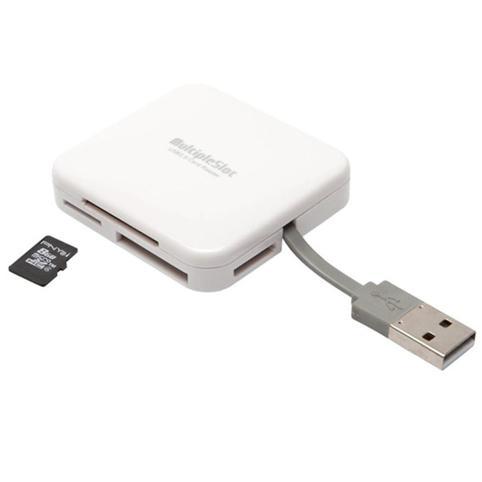 Card Reader USB 2.0 Το ALL IN ONE card reader της PNY είναι μια εύκολη και πάντα εύχρηστη επιλογή για τους χρήστες smartphone/tablet που αναζητούν έναν απλό τρόπο γρήγορης και εύκολης μεταφοράς αρχείων (φωτογραφίες, βίντεο). Με υποδοχές για SD, SDHC, SDXC, MicroSD, MicroSDHC, MicroSDXC, Mini SD, MiniSDHC, Memory Stick Pro, Memory Stick Pro Duo, Memory Stick M2, MMC, RS-MMC, xD και CompactFlash, αποτελεί την ιδανική λύση για γρήγορη και αποτελεσματική μεταφορά δεδομένων. Διαθέτει ενσωματωμένο καλώδιο USB 2.0.Υποστηριζόμενες κάρτες μνήμης:SD, SDHC, SDXC, MicroSD, MicroSDHC, MicroSDXC, Mini SD, MiniSDHC, Memory Stick Pro, Memory Stick Pro Duo, MMC, MMC, xD, CompactFlashΑπαιτήσεις συστήματος- Υποστηρίζει: Windows ME, 2000, XP, Vista, 7, 8- Υποστηρίζει: Mac 9.1 ή νεώτερα- Υποστηρίζει: Linux Kernel 2.4.2 ή νεώτερα- Διαστάσεις: 54 x 54 x 13 mm