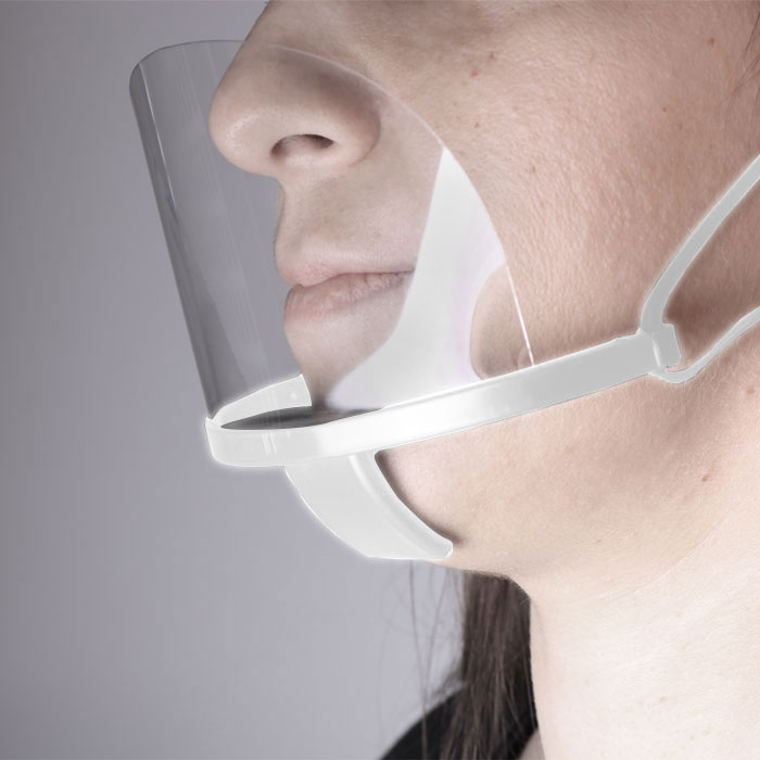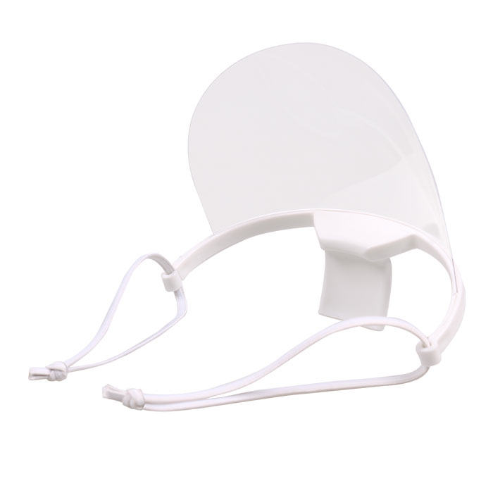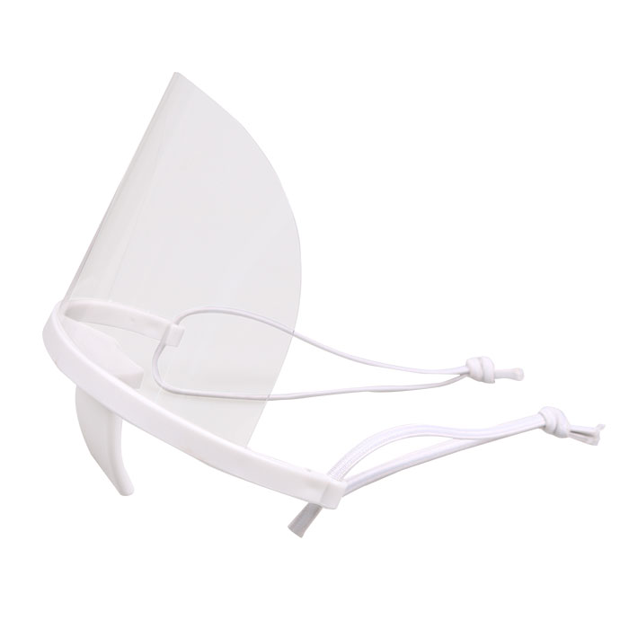 Διάφανη πλαστική προστατευτική μάσκα προσώπου πολλαπλών χρήσεων, σε λευκό χρώμα.Η προστατευτική μάσκα πολλαπλών χρήσεων είναι ιδανικη για ξενοδοχεία, χωρους εστίασης, αρτοποιεία, ζαχαροπλαστεία, καταστήματα λιανικής πώλησης, κομμωτήρια κλπ.Το διάφανο πλαστικό κάλυμμα σας προστατεύτει από τα μικρόβια και τα βακτήρια, επιτρέπει την ελεύθερη αναπνοή και δεν εμποδίζει την όραση και την ομιλία.Διαθέτει ελαστικά κορδόνια επιτρέπουν την ρύθμιση της μάσκας ανάλογα με το πρόσωπο.